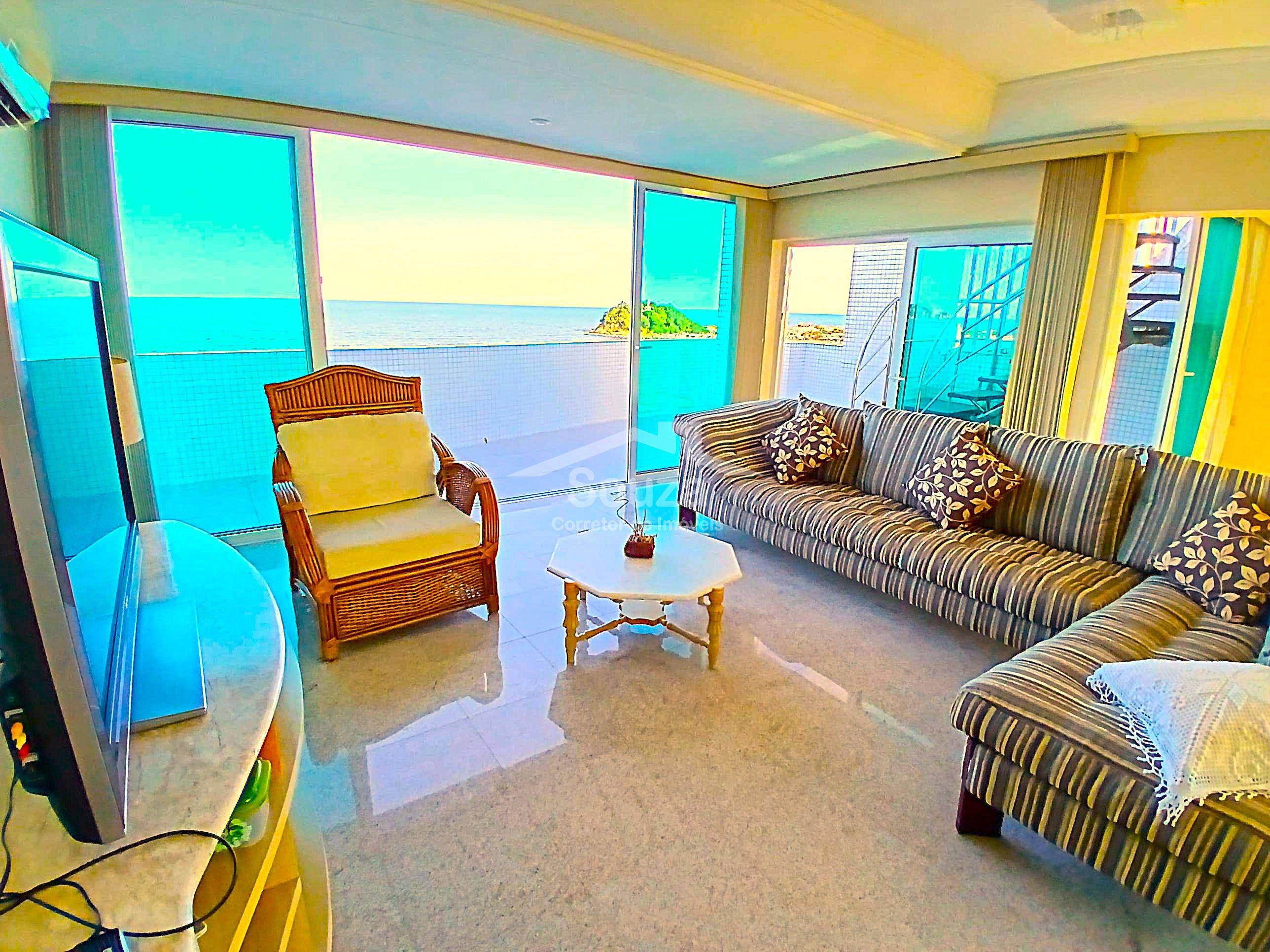 Excelente Cobertura triplex de frente pro mar em Guaratuba. Localizada na Praia central de Guaratuba, em uma das regiões mais nobres e procurados do litoral. A Cobertura tem uma área total de 228,35 m², distribuído em uma ótima planta, possuindo 161,06 m² de área privativa, Possuindo no 1º pavimento(11º andar), Sala de estar e jantar, tendo uma sacada ampla com churrasqueira e toda voltada para o mar, tendo uma vista de toda Orla de Guaratuba, desde a praia central até o Morro do Cristo, Cozinha com uma vista de toda a cidade de Guaratuba e da Baia, 2 dormitórios, sendo 1 suíte ampla, 1 banheiro social. No 2º pavimento(12º andar), possui 3 salas ambientes divididas entre sala de tv, sala de esta e sala de jantar, com uma vista de toda a orla de Guaratuba, terraço externo, 1 suíte com acesso ao terraço e área de serviço. No 3º pavimento(13º andar), possui amplo terraço descoberto, onde tem vista para toda a cidade de Guaratuba, desde a praia até a baia e serra do mar. Possui 1 vaga de garagem, e o prédio dispõe de vagas extras compartilhadas.